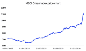 The MSX 30 Index has climbed more than 9% in a single week, its strongest performance since 2014 and is up nearly 20% year-to-date as of mid-February 2026, outperforming the broader MSCI Emerging Markets Index. The rally reflects growing anticipation that Oman could meet MSCI’s quantitative requirements this year and potentially secure inclusion by 2028.