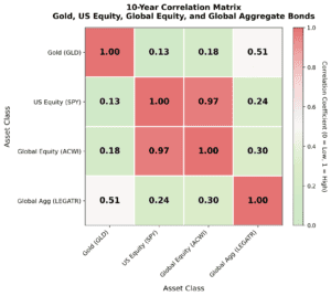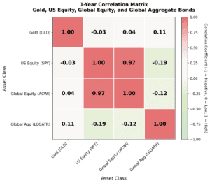 Importantly, gold does not move in lockstep with equities. Long-term data shows gold’s correlation with the S&P 500 is low and regime-dependent, often diverging during stress periods. That diversification characteristic is precisely why capital returned quickly after the correction.