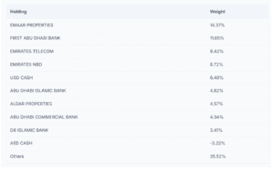The UAE fund’s strength remains closely linked to the performance of its largest constituents. Emaar Properties, which represents approximately 14% of the index, has reached fresh highs this week, reflecting continued resilience in Dubai’s real estate market. The second-largest holding, First Abu Dhabi Bank, at roughly 11.5% weight, remains a proxy for liquidity conditions and capital formation across Abu Dhabi. During MSCI rebalance windows, shifts in weightings for such large-cap constituents can materially influence ETF trading patterns, particularly when passive vehicles must execute size in a compressed time frame.