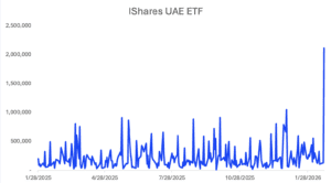 The iShares MSCI UAE ETF finished the session at an all-time high of $22.23 earlier this week, and by the market close volumes had swelled to approximately 2.1 million shares. That compares with a 20-day average of roughly 250,000 shares, underscoring how unusual the day’s activity was. While the early spike initially suggested opportunistic buying, the sustained flow into the closing auction aligns more closely with index-driven adjustments tied to MSCI’s quarterly rebalance process.