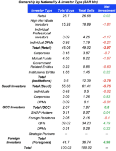 - Saudi institutions: Net sales of ~SAR 2.8bn