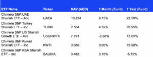 While Europe marks a milestone, the Gulf Cooperation Council has already built a robust Islamic ETF landscape. Abu Dhabi’s Chimera Investment has led regional development, launching the Chimera S&P UAE Shariah ETF in 2020, followed by the Chimera S&P KSA Shariah ETF on ADX in early 2022, which drew roughly AED 72 million in its first week, and a Chimera S&P Kuwait Shariah ETF shortly after. Together, these products give Gulf investors Shariah-aligned exposure to their home markets within an index-based framework.