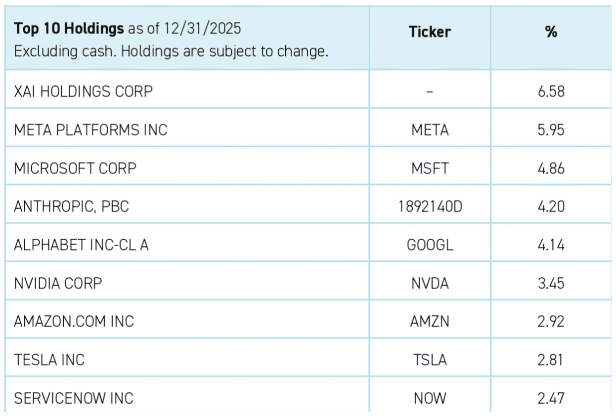 With xAI now set to be folded into a larger, IPO-bound corporate structure, AGIX stands to maintain indirect exposure to the combined entity’s growth trajectory, subject to future rebalancing and portfolio decisions. Crucially, xAI is not an isolated position within the fund.